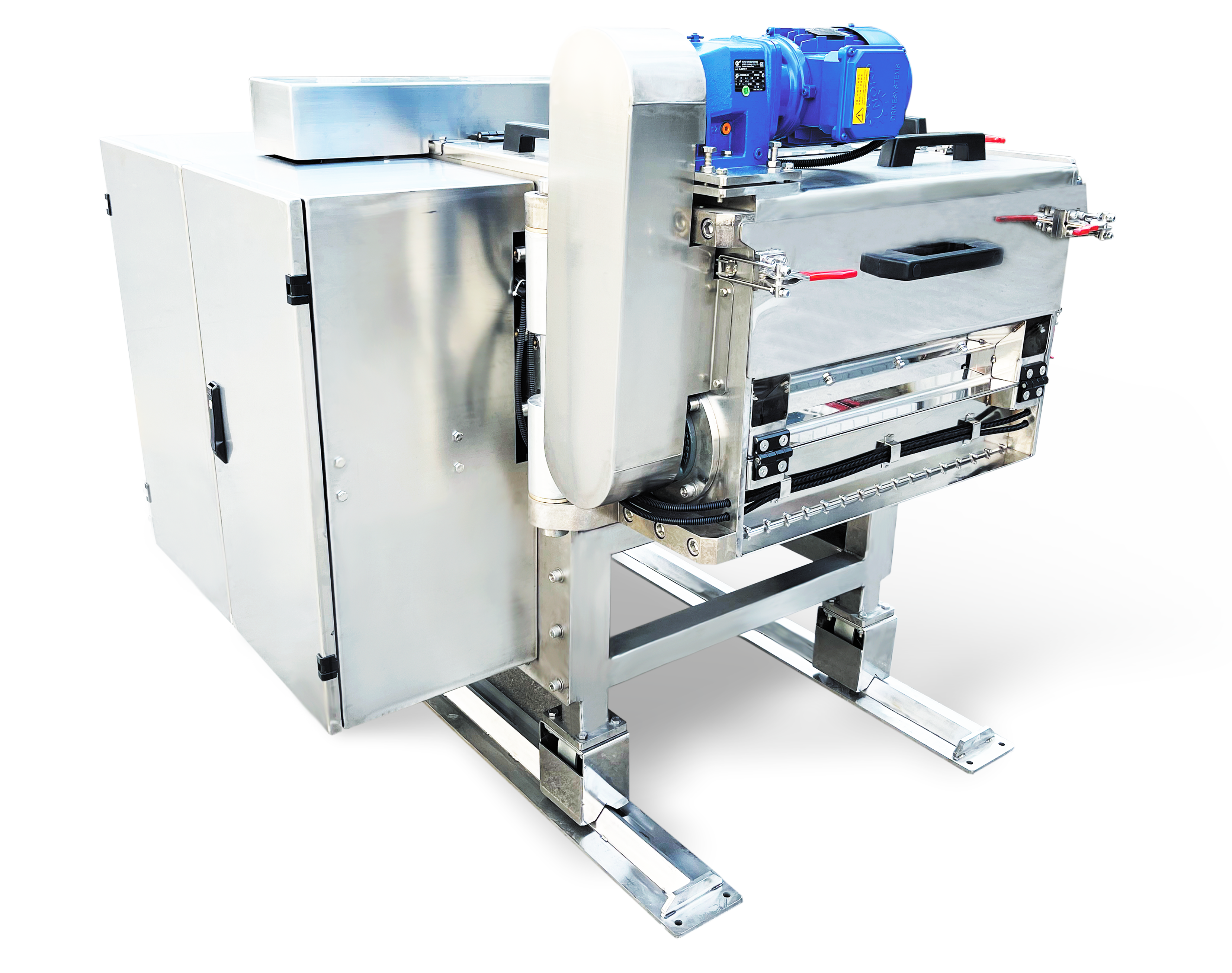 型號 產量(kg/h) 冷卻輥直徑(mm)  PU帶寬度(mm) 破碎功率(kW) 輸送功率(kW) 外形尺寸